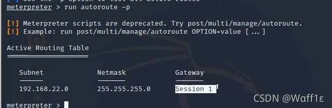 添加路由地址:run autoroute -s 192.168.22.0/24