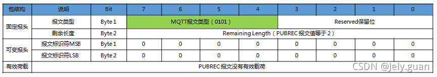 PUBREC 报文是对 QoS 等级 2 的 PUBLISH 报文的响应。它是 QoS 2 等级协议交换的第二个报文。