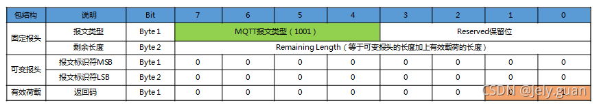 SUBSCRIBE 报文的有效载荷包含了一个主题,它们表示客户端想要订阅的主题,后面跟着一个字节,这个字节被叫做 服务质量要求(Requested QoS)。它给出了服务端向客户端发送应用消息所允许的QoS 等级。