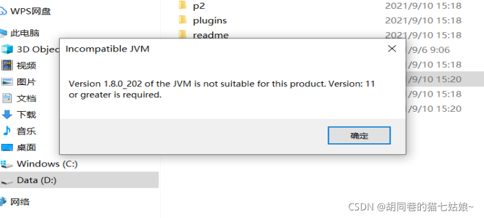 关于JDK的下载建议到官网下载,JDK8的版本是最常用的,更高的版本也确实没有必要,但是我们很多同学(比如我自己)在下载好安装好所有环境然后打开eclipse的时候就会出现这样一个弹窗: