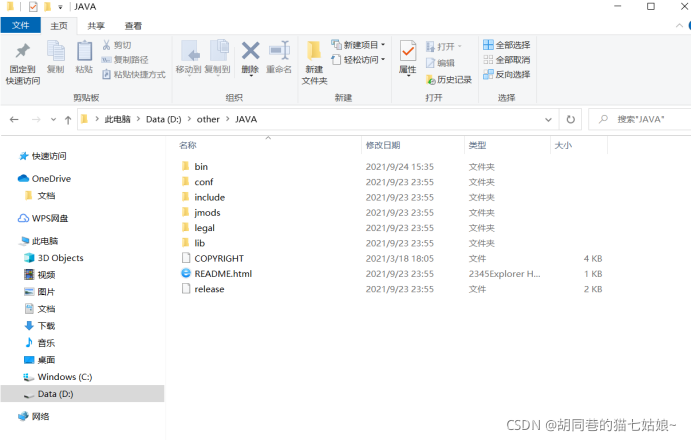 找到下载目录,解压到一个文件夹,我建议自己在D盘或E盘新建一个文件夹命名一个比较容易的名字,自己好理解的,然后解压到这个文件夹,解压完成之后点击进去应该是这个样子的(我自己是建立了一个other文件夹,把JAVA文件夹放进去,国外软件不建议路径名含中文)