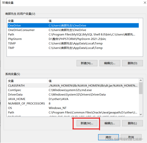 点进去之后不用管上面的用户变量,直接点击下面系统变量的新建按钮