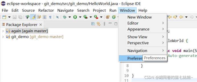 注册好了之后,我们在菜单栏的window中找到preferences目录,点击