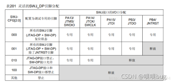 GPIO_PinRemapConfig(GPIO_Remap_SWJ_JTAGDisable,ENABLE);//只关闭JTAG而保留SWD