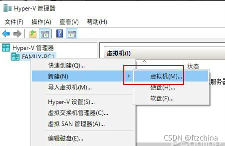 上面只是打开了虚拟机的开关,并不能直接使用,就像现实中的电脑一样,你要首先为它配置硬件。具体方法:点击左下角搜索框,输入“Hyper”调出Hyper-V管理器(可以将图标发到桌面上建立一个快捷方式,后面省的找了),然后在管理器窗格左侧右击电脑图标,选择“新建”→“虚拟机”。