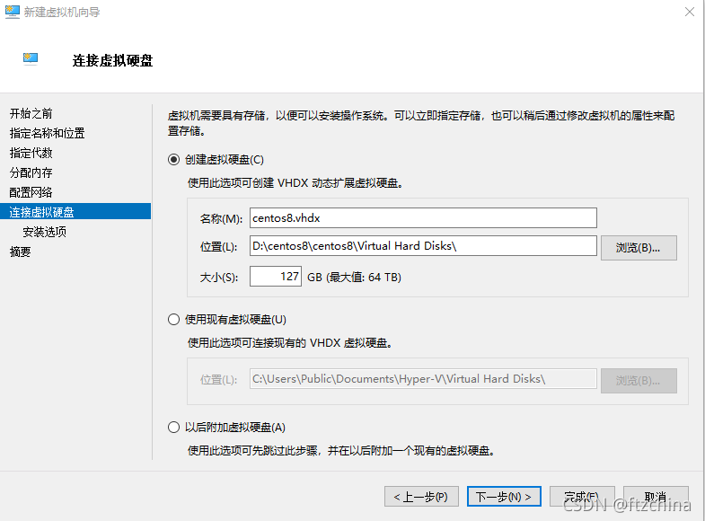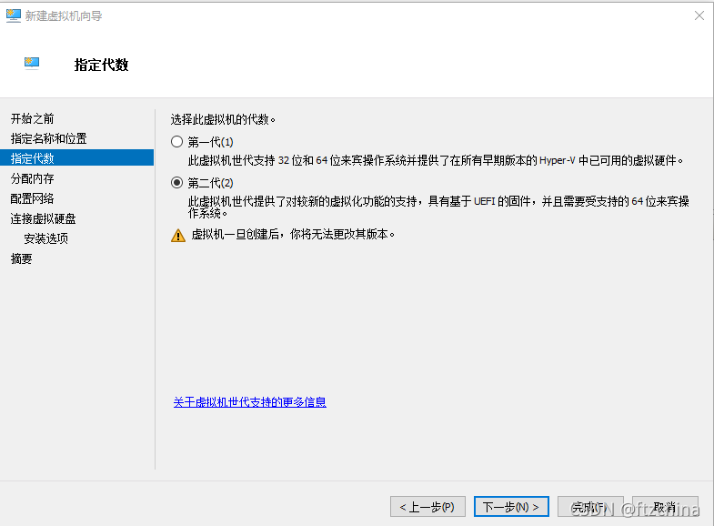 内存数根据实际情况调整,这里Hyper-V给出的默认值太保守了,实际数值请根据操作系统来定,一般建议4GB以上,其它系统酌减。最终是网络适配器,选择“Default Switch”或者自己创建的适配器根据自己日后的使用情况选择,网络这一块个人感觉比较麻烦,得自己去深入学习。