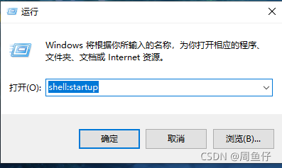 首先打开运行输入shell:startup 这是电脑自启文件夹