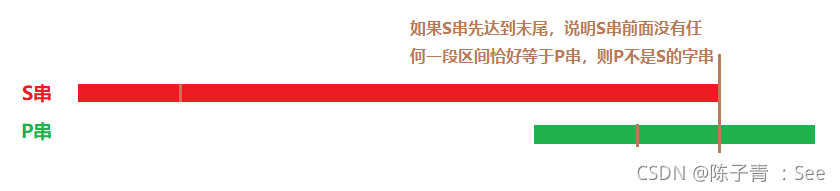 步骤 3:如果 P串没有达到末尾,S却先到达末尾,那么 P 则不是 S 字串