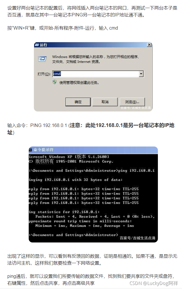 电脑B设置时把IP地址改一下,不要和第一台的一样,设置范围必须是2-254,默认网关一定要和第一台的一样,原因是这种掩码的网段,最后一位为0的IP是网段的网络地址,而最后一位为255的IP是网段的广播地址,不能分配给主机,都不能选用。。如下图: