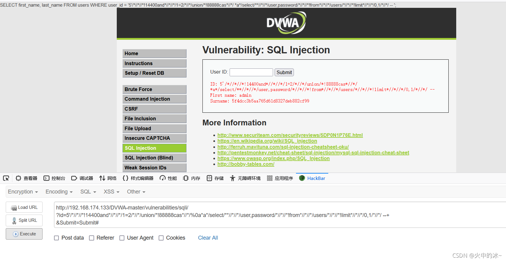 已DVWA SQL注入为例对网站安全狗进行绕过测试。