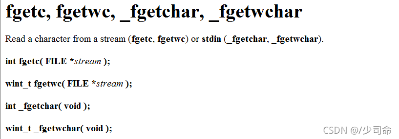 | 字符输入函数 | fgetc | 所有输入流 |
