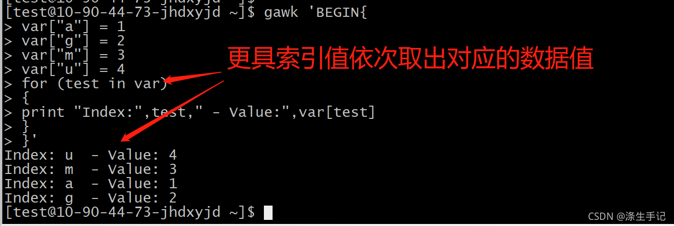 - asorti(s [,d]) 将数组s按索引值排序。生成的数组会将索引值作为数据元素值,用连续数字索引来表明排序顺序。另外如果指定了d,排序后的数组会存储在数组d中