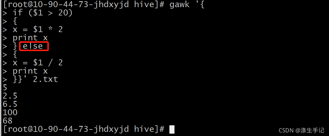 gawk的if语句也支持else子句,允许在if语句条件不成立的情况下执行一条或多条语句。