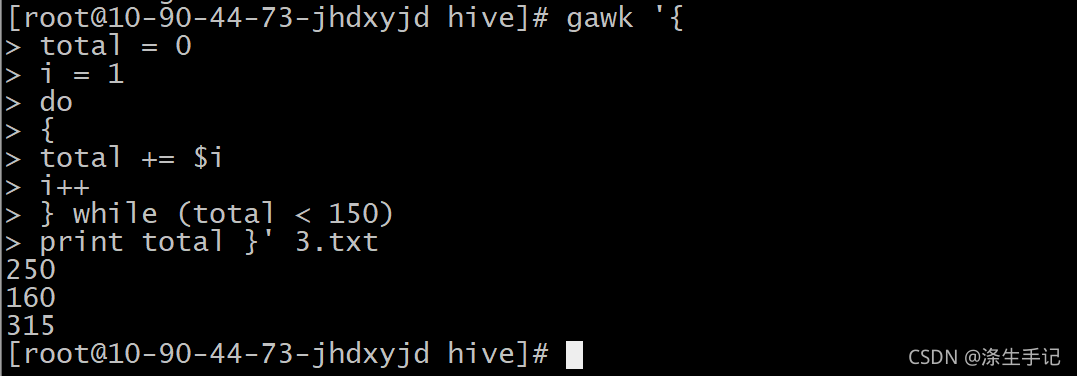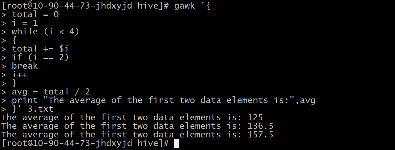 gawk编程语言也支持在while循环中使用break语句和continue语句,允许从循环中跳出。