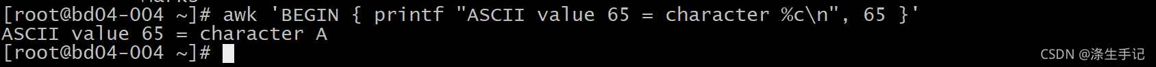 它打印一个字符。如果用于%c的参数是数字,它被视为一个字符和打印。否则,参数被假定为一个字符串,该字符串的唯一第一字符被打印。