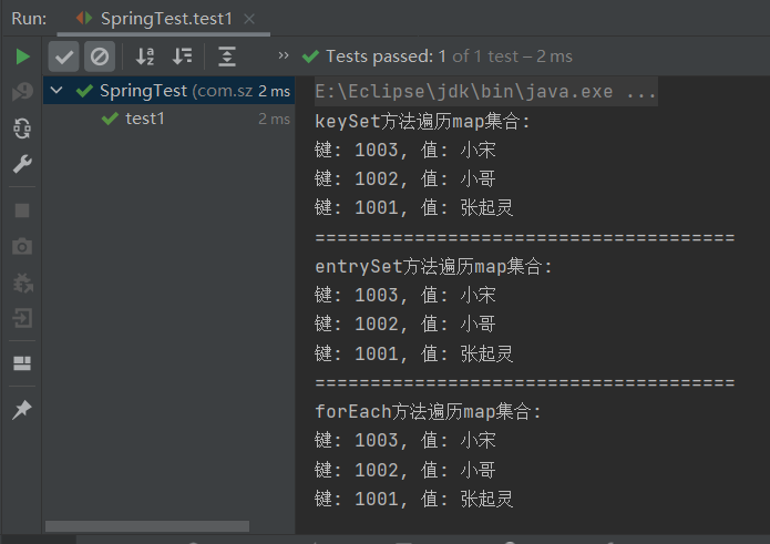 这三个方法分别是 keySet、entrySet、forEach,源码我这里就不再多说了,下面给出的是测试代码。