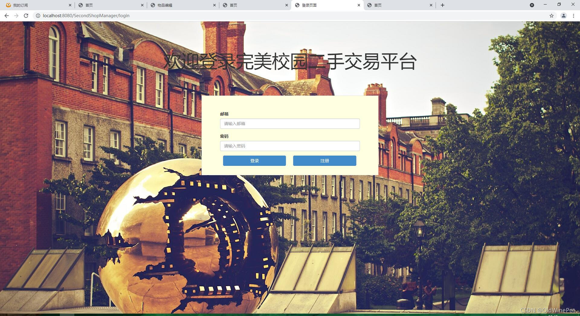 系统分为前台和后台、前台用户自主注册、后台只有一个管理员账号