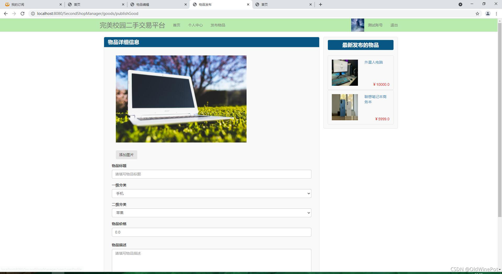 具体的功能如下: 前台用户:注册、登录、发布物品、个人中心、购买物品、物品留言、收藏物品等。