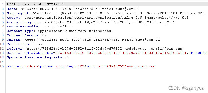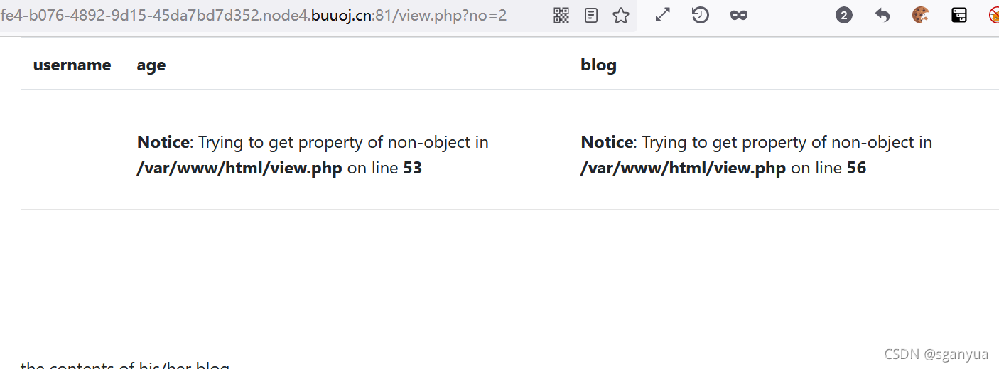 虽然做这题之前事先进行了注册,如果先进行目录扫描,对这个文件进行代码审计后,也可能猜到name、age、blog这三个属性到底是用作什么