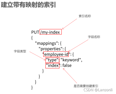 Elasticsearch中,我们可以使用RESTful API(http请求)来进行索引的各种操作。创建MySQL表的时候,我们使用DDL来描述表结构、字段、字段类型、约束等。在Elasticsearch中,我们使用Elasticsearch的DSL来定义——使用JSON来描述。例如: