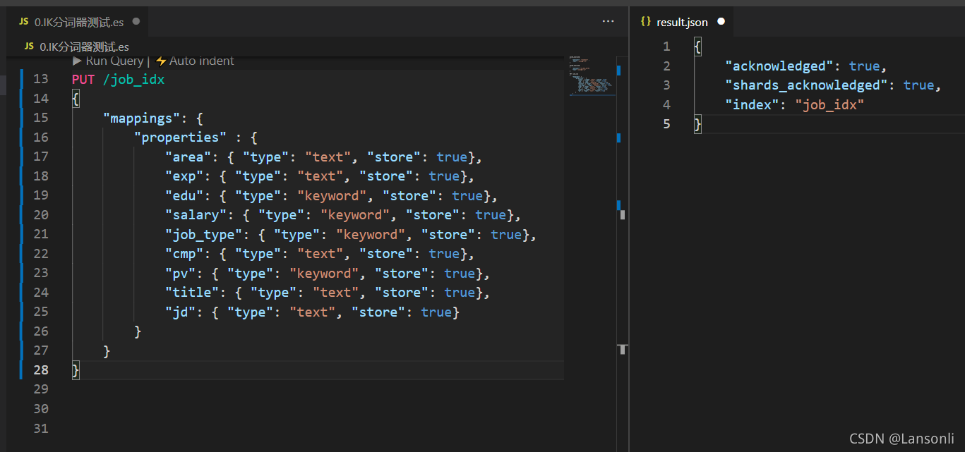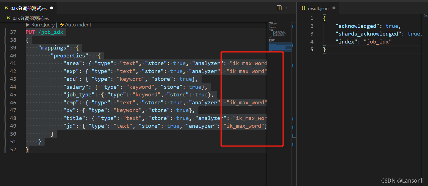 "title": { "type": "text", "store": true, "analyzer": "ik_max_word"},