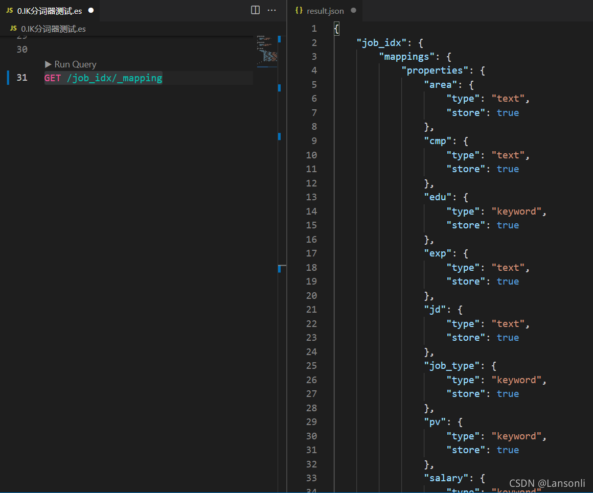 "area": { "type": "text", "store": true, "analyzer": "ik_max_word"},