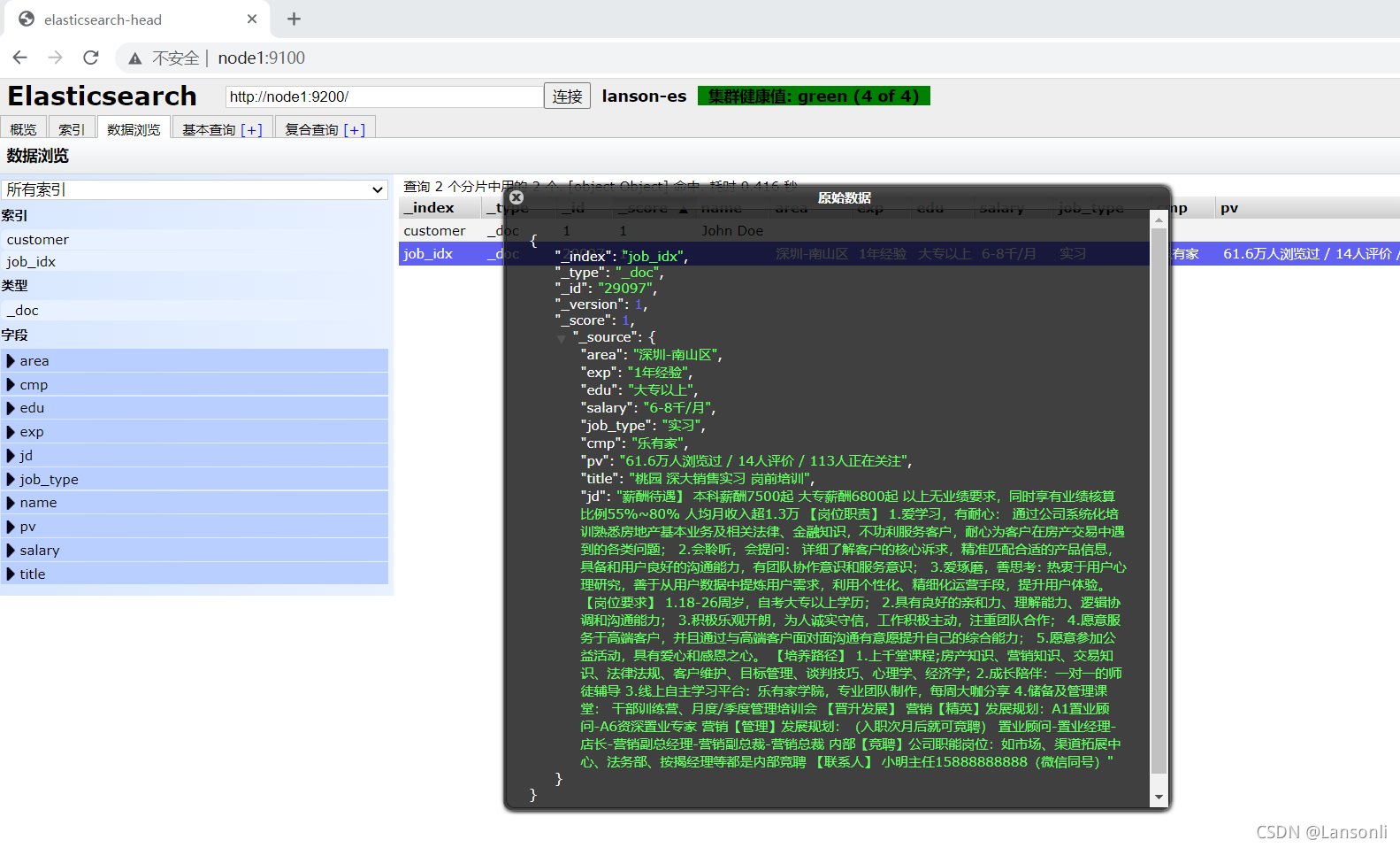 我们现在有一条职位数据,需要添加到Elasticsearch中,后续还需要能够在Elasticsearch中搜索这些数据。
