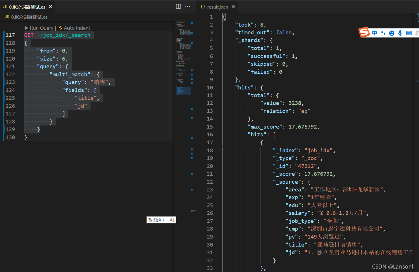除了检索职位描述字段以外,我们还需要检索title中包含销售相关的职位,所以,我们需要进行多字段的组合查询。