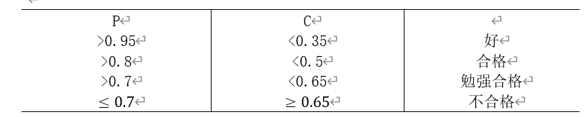 根据P与C的取值,有对应好、合格、勉强合格、不合格的模型评价结果。