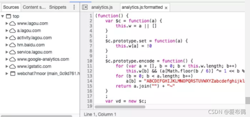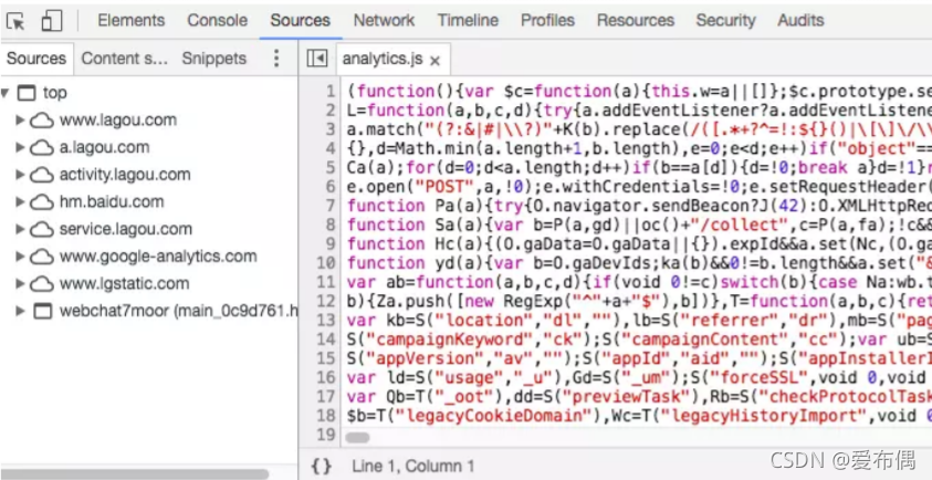 Sources js资源页面:这个页面内我们可以找到当前浏览器页面中的js 源文件,方便我们查看和调试
