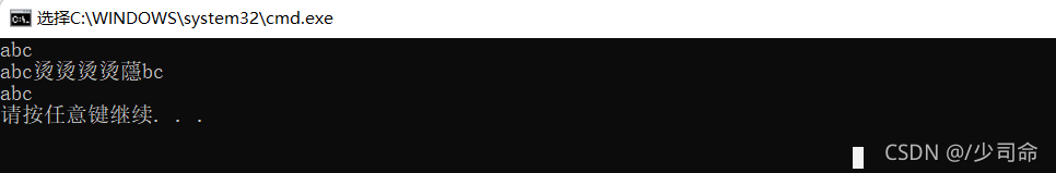 printf("a = %d b = %d c = %d\n:", a, b, c); // a:9, b:23, c:8
