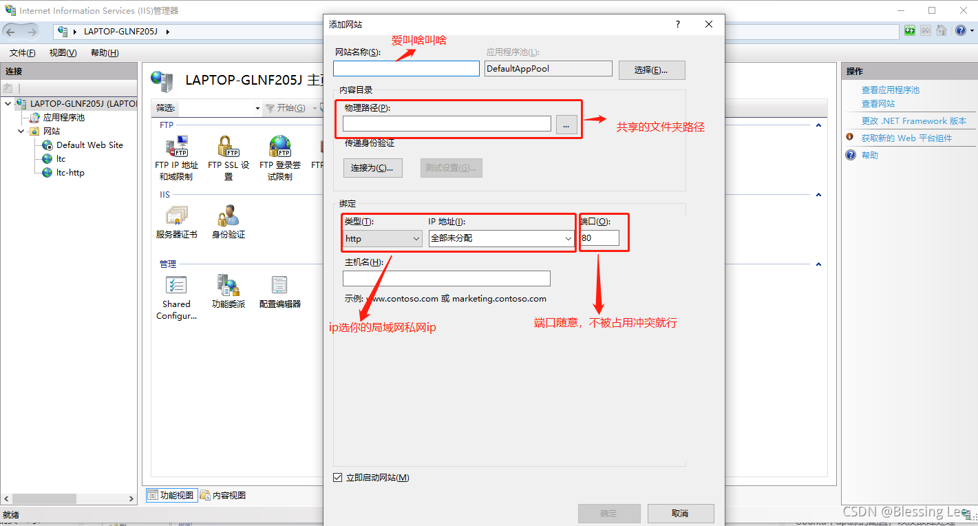 其他的与前面的一样,可以将共享的文件夹换成网站的文件夹,会自动默认打开网页。也可以设置默认的网页