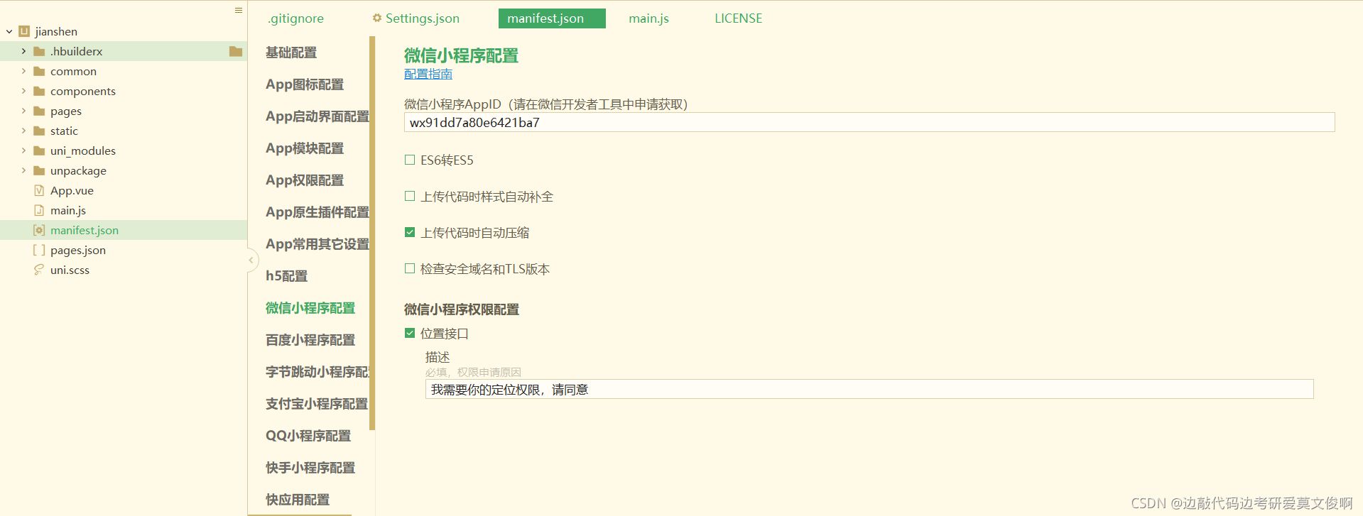 打开我们文件里面的manifest.json查看里面授权的AppID如果与开发工具中的ID相同就可以自动运行了