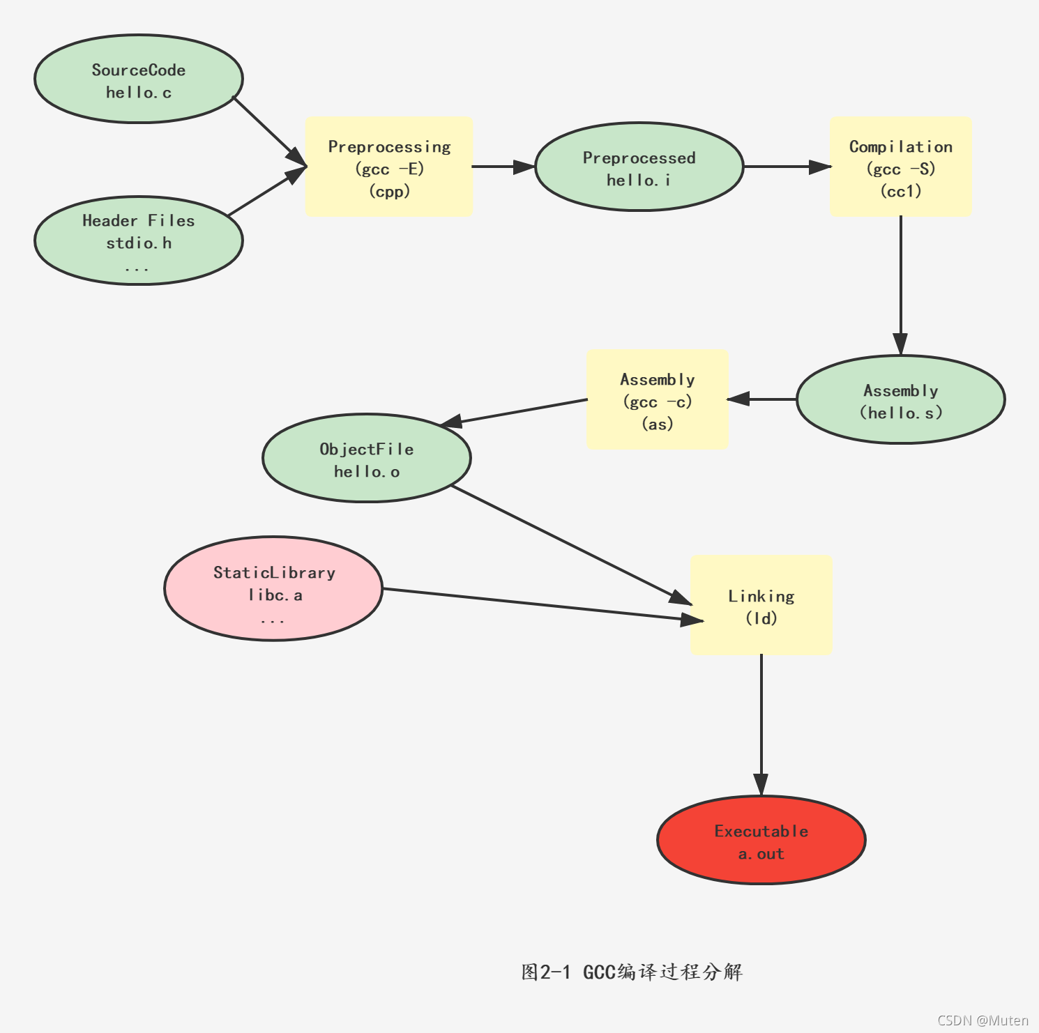 行来编译一个源代码文件,简单的一句“gcc hello.c”命令就包含了非常复杂的过程。