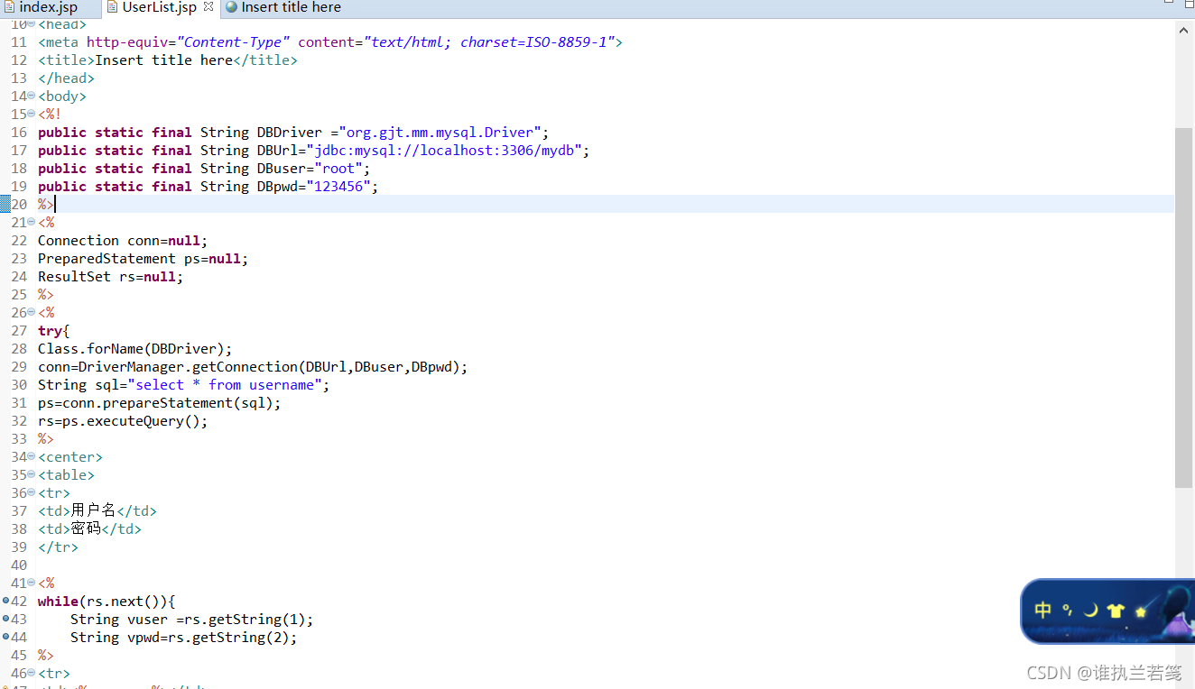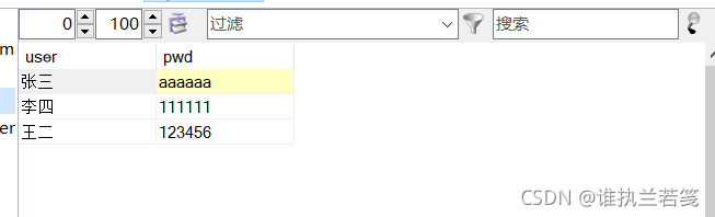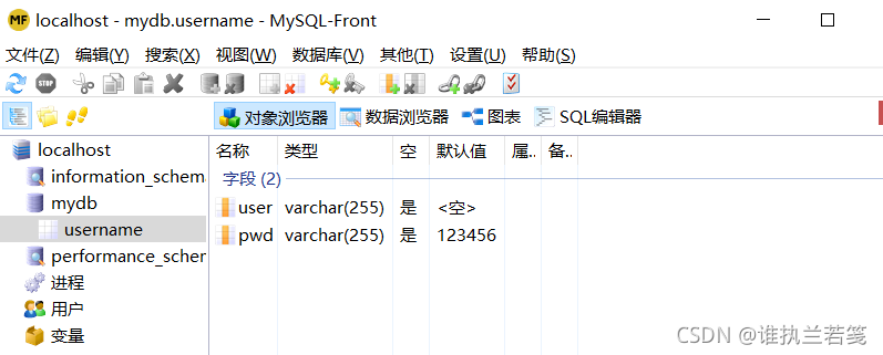 这是我建立的mydb数据库,新建表username,有两个列值user和pwd