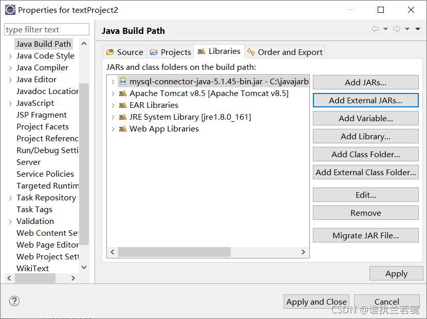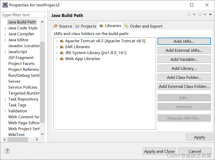 将下载的架包存到合适的地方解压,右键textProject,选择BuildPath,如图,