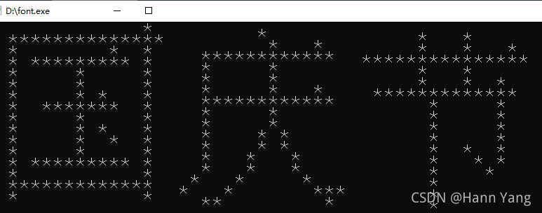 由于控制台的输出的文字间隔比较大,所以显得有点粗壮。如果把这些点阵信息还原到图形界面中去,就可以缩小间隔显示成很小的字;甚至可以读取32点阵字库,这样文字会显得更圆润饱满。