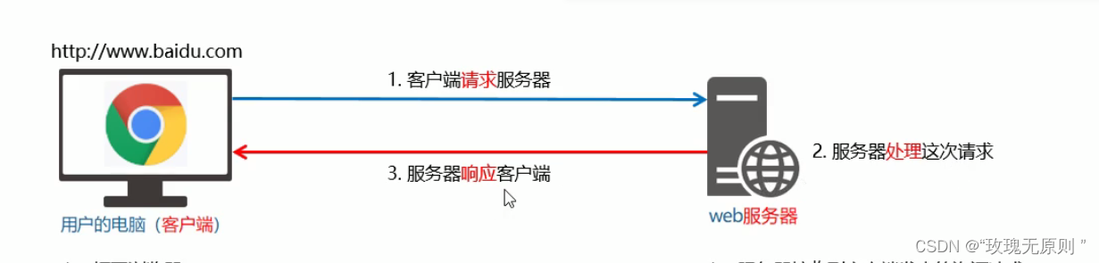 通俗理解,我们自己的电脑就是客户端,我们上网百度就是去服务器上获取别人的资源。而服务器就是存放了我们要的东西。我们百度去查资料就是一个白嫖获取资源的过程!叫做资源获取!