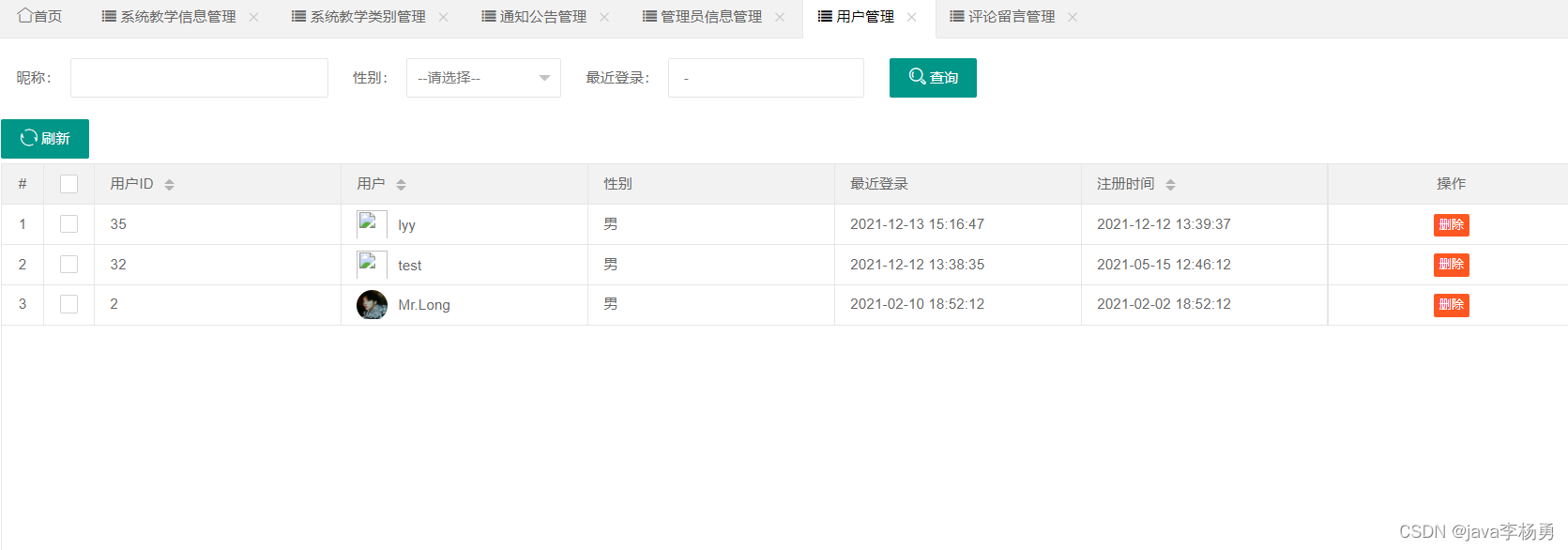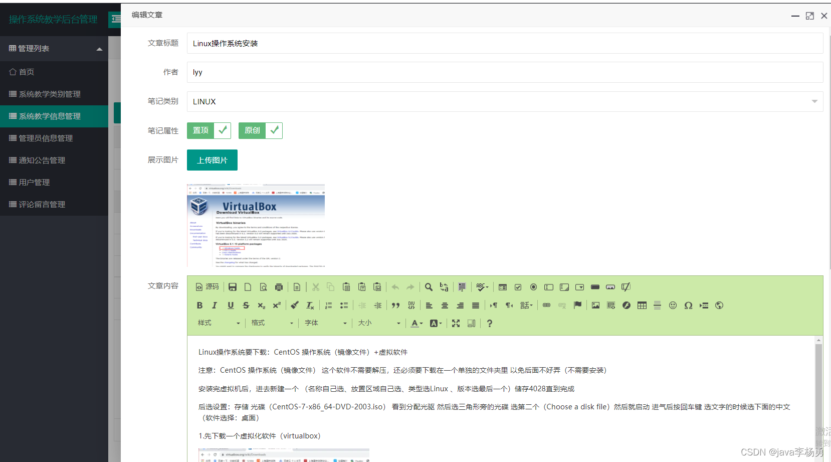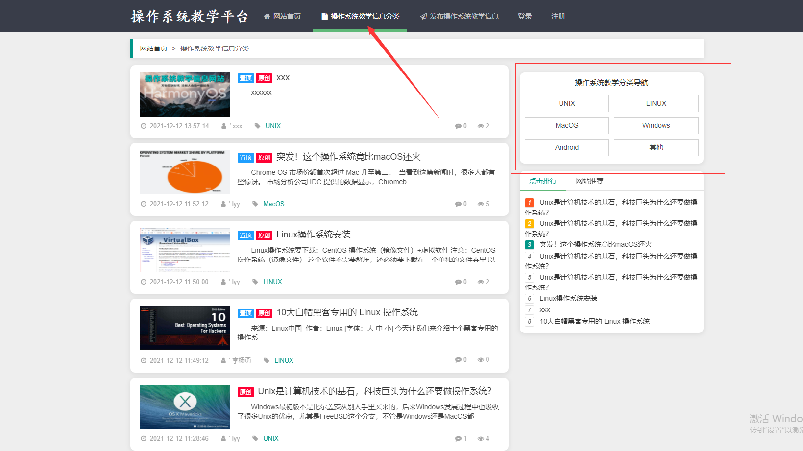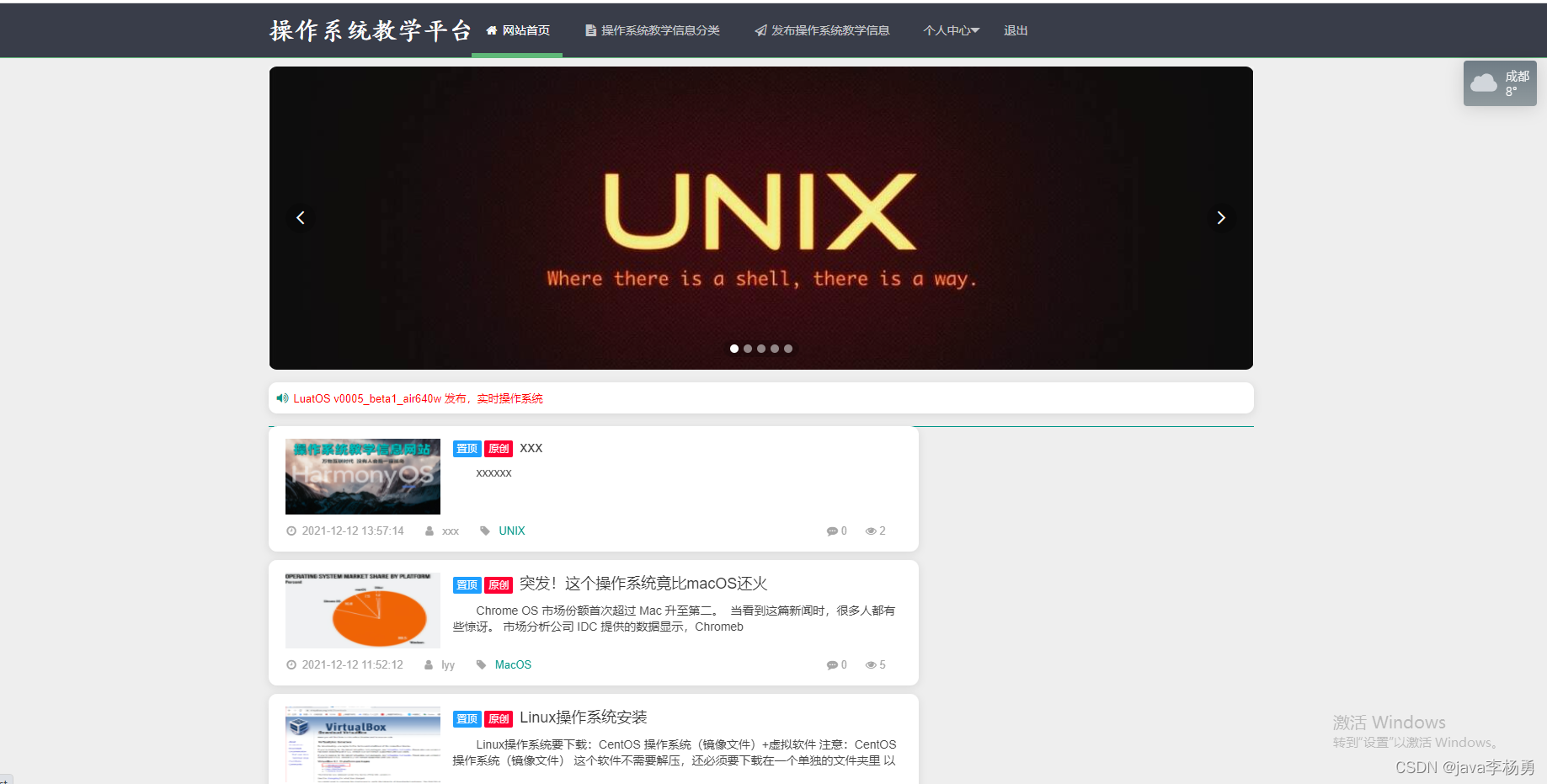 管理员: 登录和注册用户统计、分类文章统计、教学分类管理、文章信息分类管理、评论管理、回复管理、用户管理、个人信息管理、退出等。