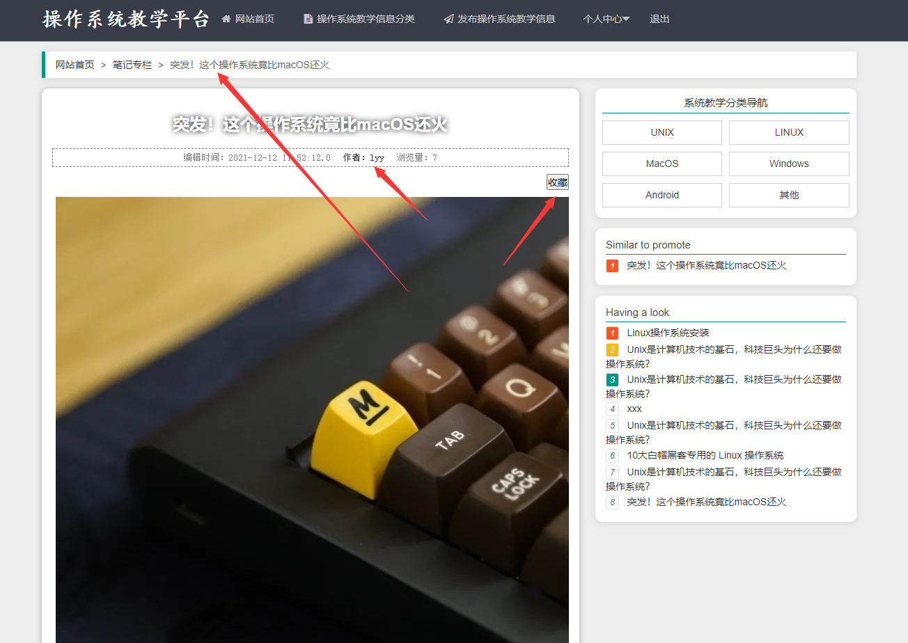 普通用户:登录注册、首页操作系统教学信息浏览、操作系统教学分类查看、操作系统教学详情查看、用户评论交流、回复讨论、收藏模块、收藏模块、浏览量统计、关注用户、我的个人中心、我的关注、我的收藏等