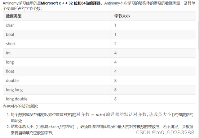 根据内存对齐的部分规则以及备注可知,默认的对齐数是4,也就是说int、long、float这些4字节和double、long long、long double这些8字节的成员可以留在最后输出(因为它们的字节数都是4的倍数)。所以只需要考虑char、bool、short这三个成员的顺序情况