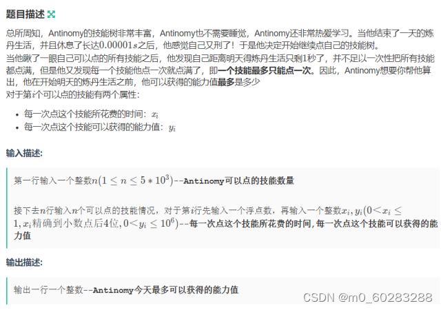 E题 Antinomy慢慢点技能树(01背包)