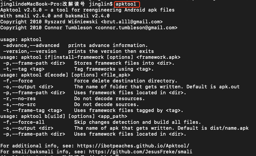 - Apktool:http://ibotpeaches.github.io/Apktool/install/ 最新版本