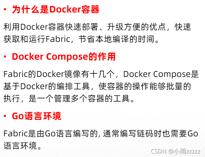 Docker,Docker Compose,Go语言环境,Fabric示例和二进制文件,Docker镜像