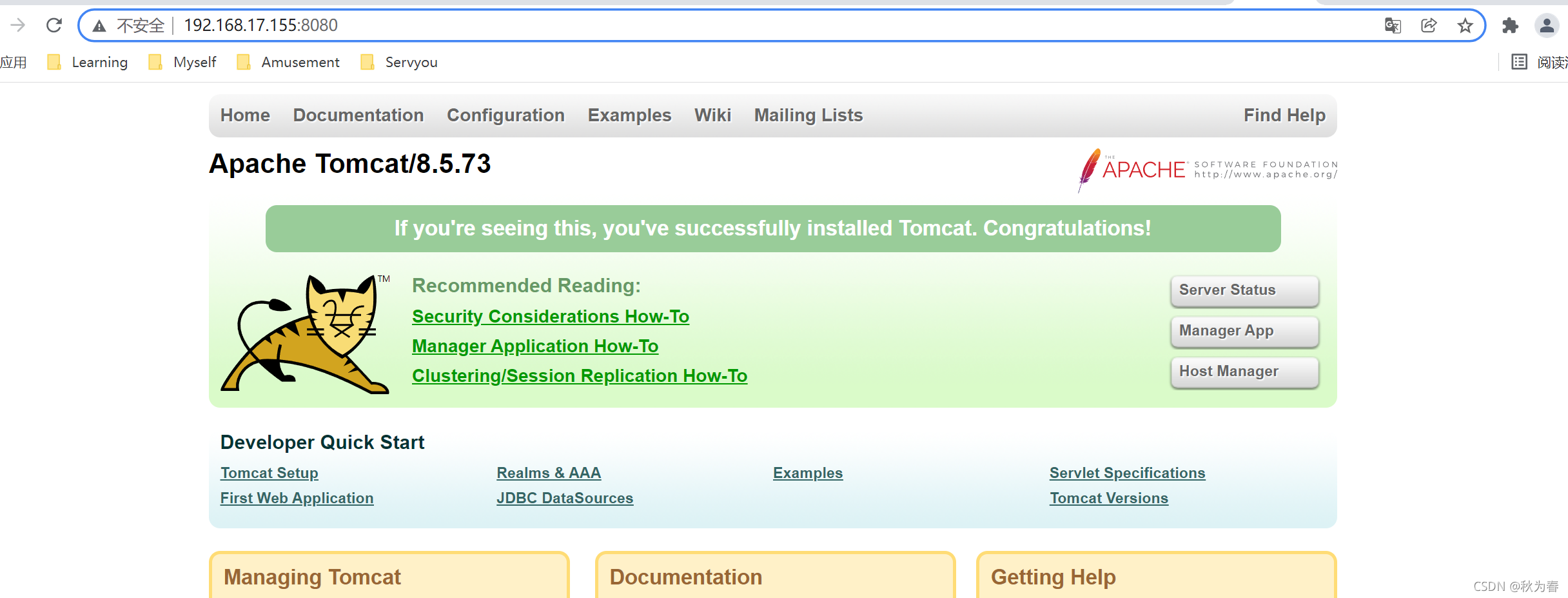 输入www.btyuit.com会直接跳转到http://192.168.17.155:8080就是tomcat的服务页面