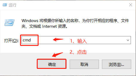 1、通过Windows+R快捷键可以打开“运行窗口”,在“窗口”中输入“cmd”,点击“确定”打开终端。