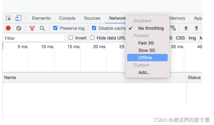 有时候我们会希望测试一下网页在弱网甚至是断网时候的表现,直接关wifi或者拔网线的话其实挺麻烦的,这时候离线模式就派上用场了。