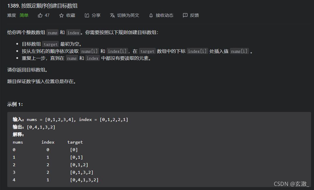 1389. 按既定顺序创建目标数组 - 力扣(LeetCode) (leetcode-cn.com)